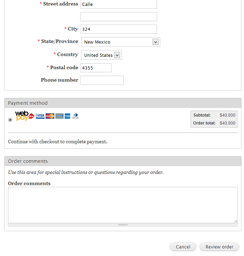 La integración es bien simple, solo basta con descargar el módulo Ubercart Webpay y una vez que lo hayamos habilitado debería estar disponible el método de pago en el checkout. Algo como esto: