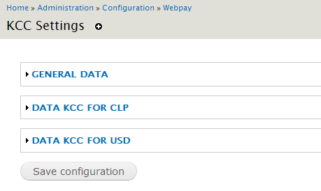 Luego vamos a la página de configuración, podemos acceder desde /admin/config/webpay, veremos las siguientes opciones: