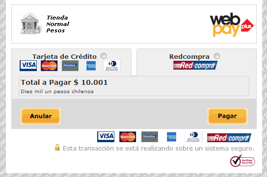 Simplemente hacemos click sobre Go to Webpay, si todo esta bien, debería redirigirnos a la siguiente página: