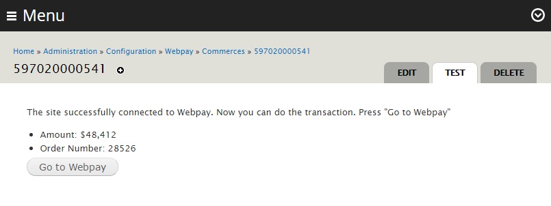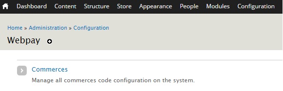 Una vez habilitado nos vamos a la configuración (admin/config/webpay)